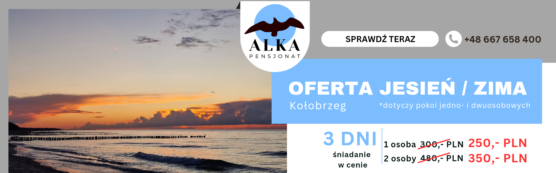 Nasi Goście cenią sobie bliskość plaży i parku. Do ich dyspozycji są pokoje: 1-osobowe, 2-osobowe, 4-osobowe oraz 5-osobowe. Zapraszamy niezależnie od pory roku oraz pogody. W cenę oferowanych przez nas noclegów wliczone są śniadania (w godzinach 8:00-10:00). Istnieje również możliwość dokupienia dodatkowych posiłków w naszej restauracji. Dokładamy wszelkich starań, by goście czuli się u nas jak w domu.